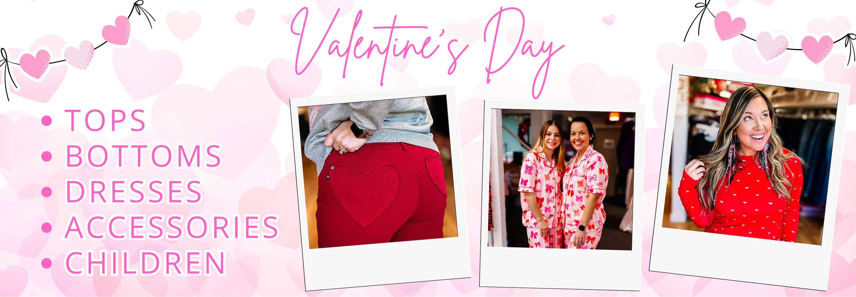 Celebrate the season of love with darling, feminine styles that make your heart (and your outfit) flutter! From soft pinks and playful ruffles to delicate bows and flirty details, our Valentine’s Day Collection is full of charming pieces to help you feel cute, confident, and completely Valentine-ready. Mix, match, and layer for looks that are perfect for date nights, galentine’s celebrations, or simply treating yourself.