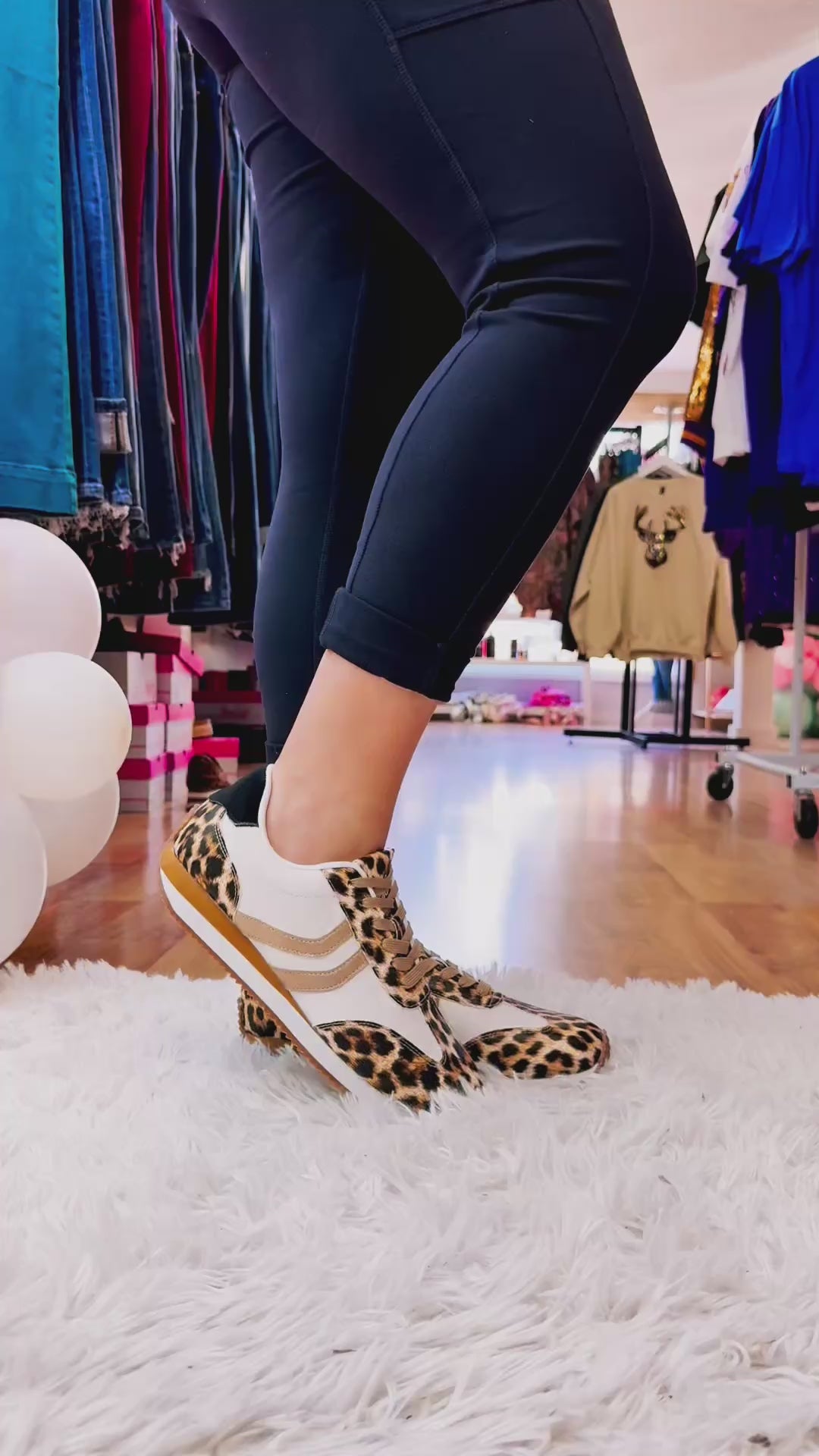 These stylish sneakers are the perfect blend of sporty comfort and bold fashion. Designed to stand out, they feature eye-catching leopard-print accents that add a fierce, on-trend touch to a classic sneaker silhouette. The neutral cream upper is beautifully balanced with shimmering gold side stripes, giving the shoe a subtle sparkle that elevates any casual outfit. Whether you’re running errands, heading to school, or meeting friends, these sneakers offer a versatile look that transitions effortlessly from day to night.