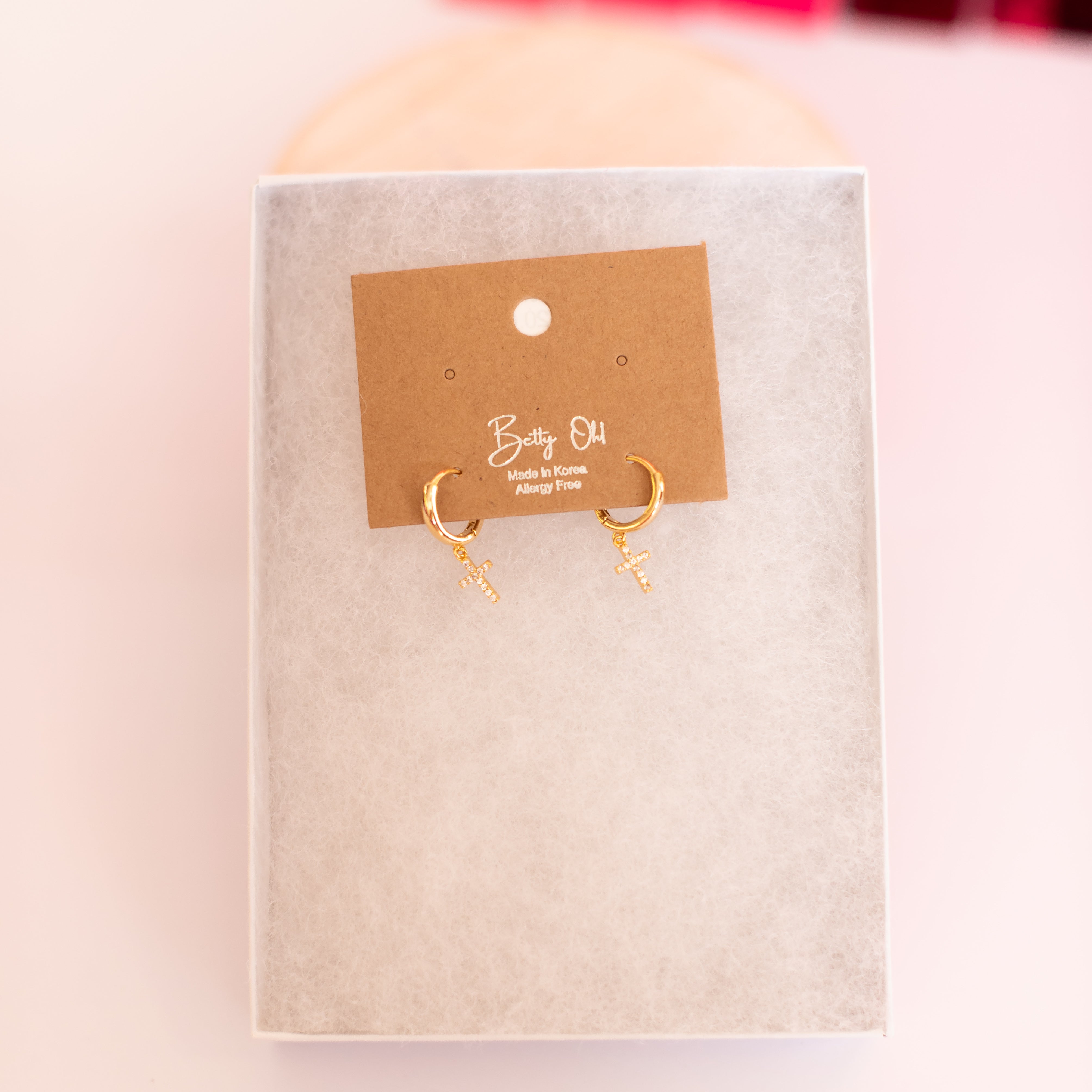 The classic cross design makes these earrings a meaningful accessory, while the subtle dangle adds just the right touch of movement and shine. Perfect for layering with other earrings or letting them shine solo, these huggies are lightweight enough for all-day wear and versatile enough to pair with anything from your favorite denim jacket to your little black dress.