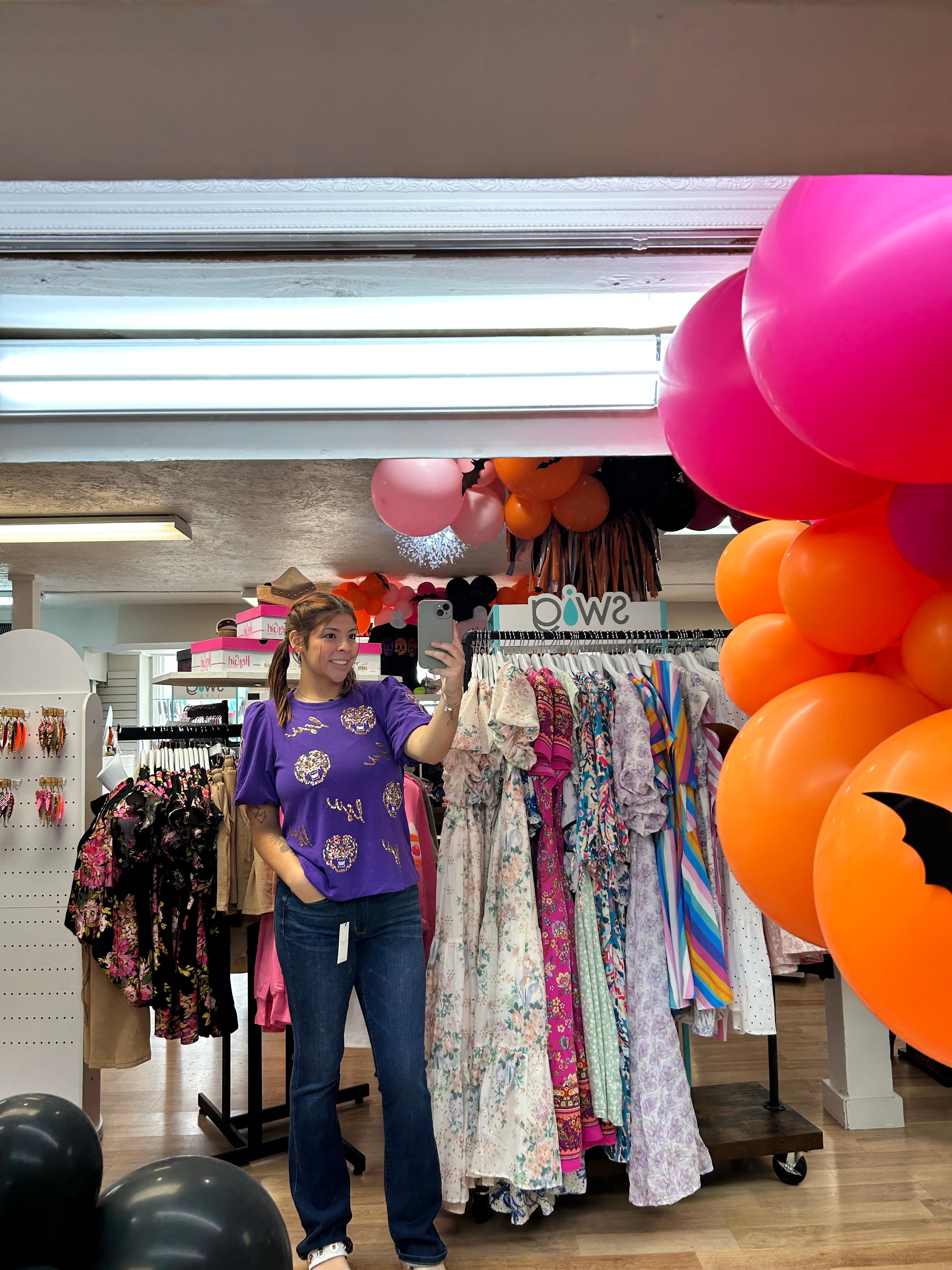 Calling all sparkle-loving Tiger fans — this one’s for you! The Geaux Get’Em Girl Sequin LSU Top brings all the game day glam with a whole lotta purple pride. Whether you're tailgating in Tigerland or strutting through campus like the queen you are, this top is your golden ticket to standing out in a sea of basic tees.