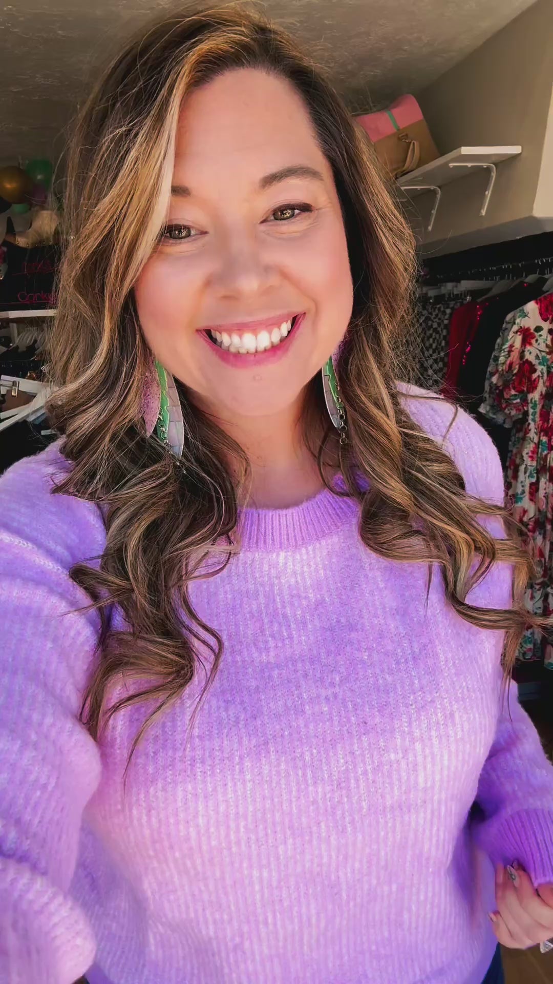 Constructed with a premium knit fabric, the Josie features a signature "cozy" texture that feels incredibly plush against the skin. The silhouette is intentionally relaxed, providing a slightly oversized fit that makes it easy to layer over your favorite tees or under structured jackets. It features a classic crew neckline and is finished with ribbed detailing at the collar, cuffs, and hem, which adds a touch of classic texture and ensures a secure, flattering shape. Whether you're pairing it with leggings for a relaxed day at home or dressing it up with light-wash denim for a casual outing, this lavender sweater is a versatile "go-to" that exudes comfort and charm.