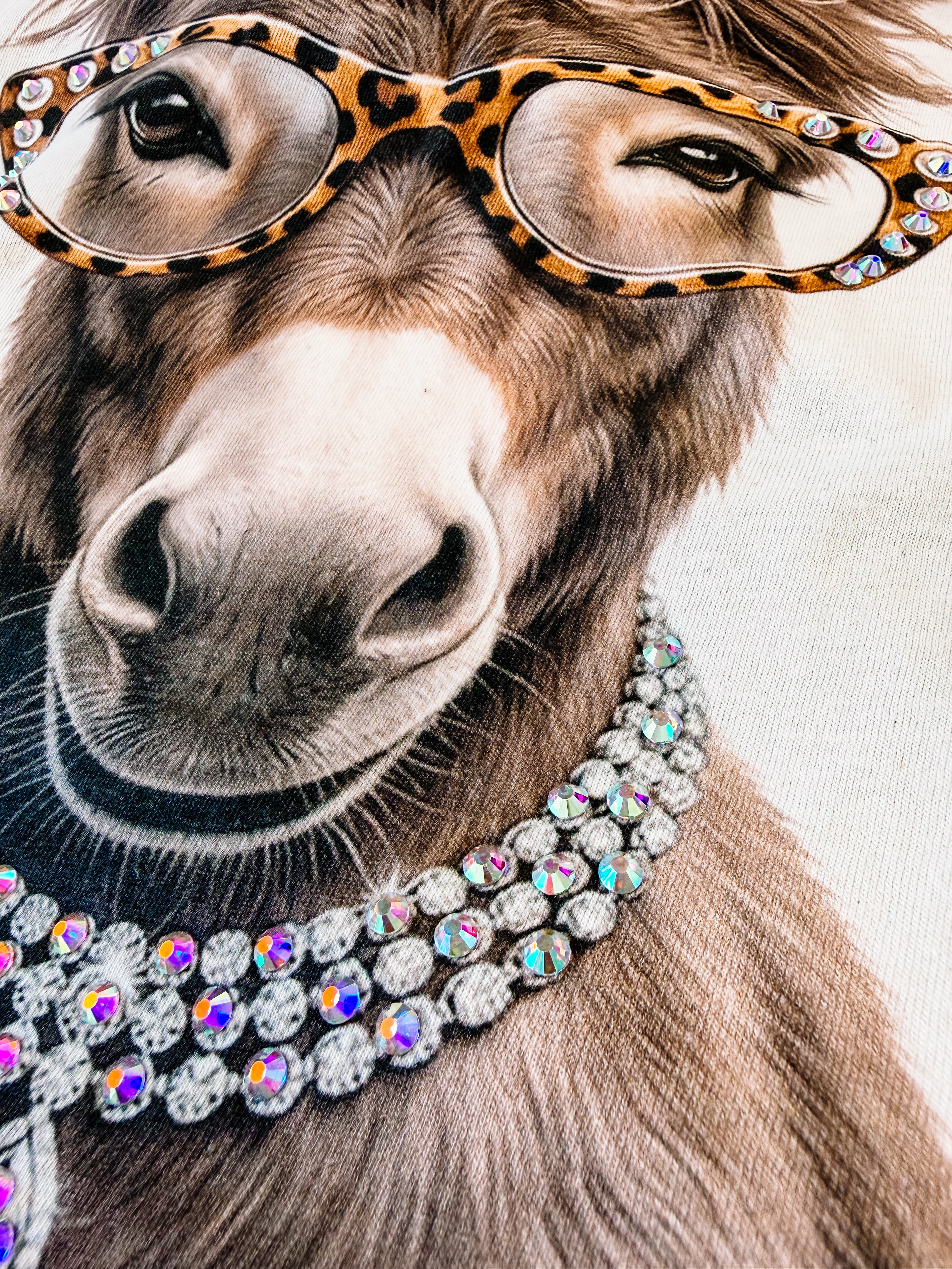 Covered in eye-catching rhinestone details, each tee delivers that bold, bougie energy without sacrificing comfort. The soft, breathable fabric keeps things easy and wearable, while the relaxed unisex fit gives you that effortless “cute without trying too hard” look we all love. It’s the kind of top you throw on and instantly feel put together—even if your hair’s in a messy bun and you’re running on iced coffee.