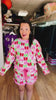 The silky-soft fabric feels like a dream, while the sweet ruffle hem and pink satin bow tie add just the right amount of playful charm. Whether you’re sipping sparkling water or sneaking a little Prosecco, these PJs make sure you look chic doing it.