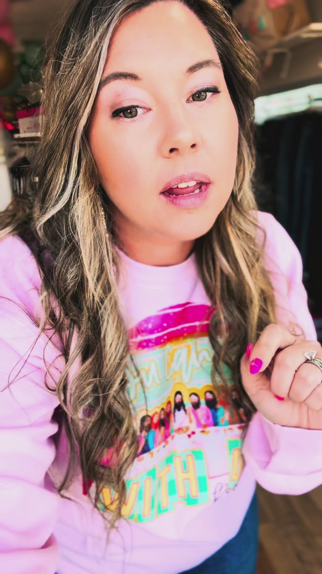 Playful, colorful, and full of personality, this sweatshirt makes a bold statement without saying a word. It’s perfect for Bible studies, youth nights, boutique events, school drop-offs, errand days, and those cozy moments when you just want to wrap yourself in something soft and uplifting.