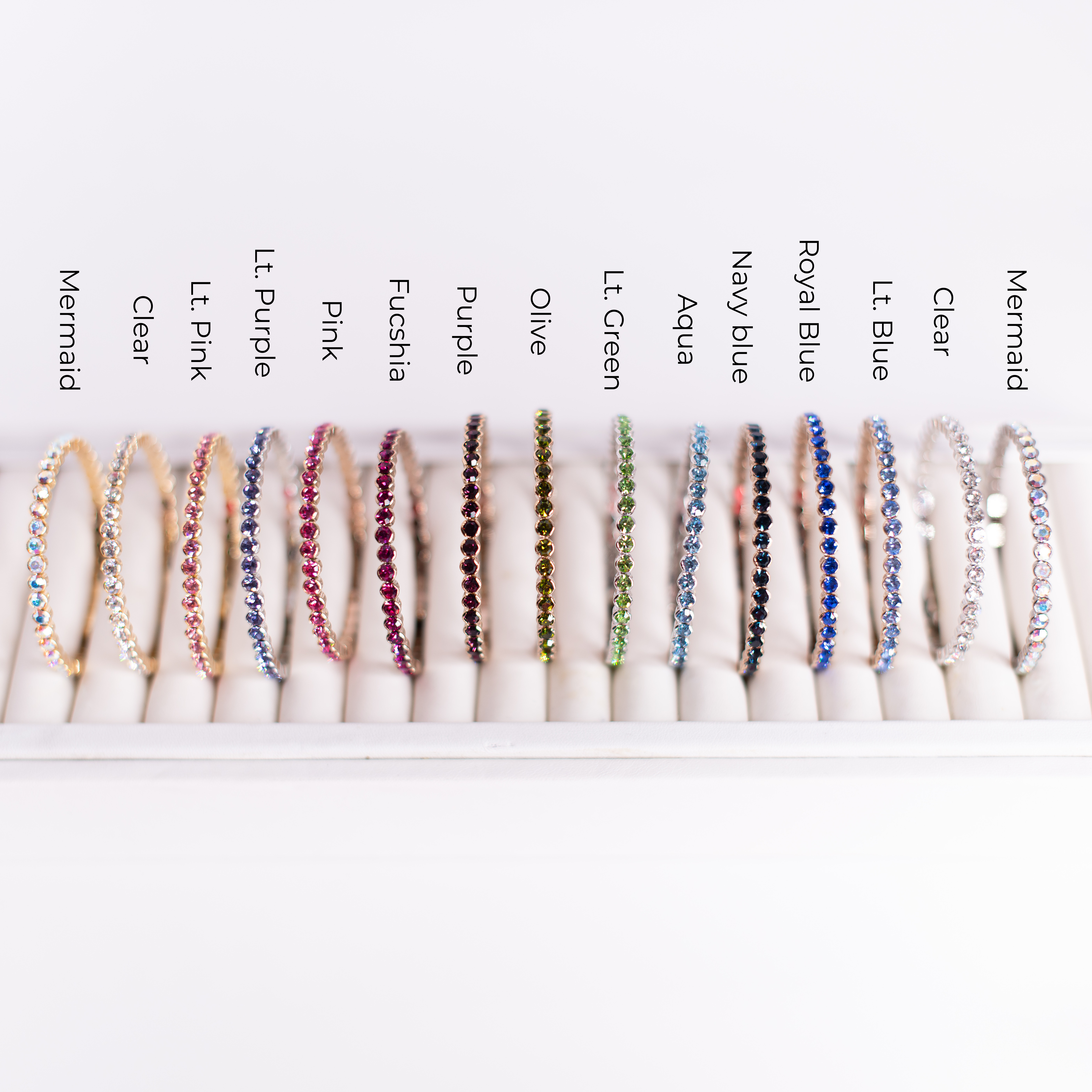 Add a touch of sparkle to any outfit with our Destin Crystal Bangle! This dazzling bangle is adorned with shimmering crystals that catch the light beautifully, making it the perfect accessory for any occasion. The bangle stretches to fit comfortably up to 2.5 inches, ensuring a secure and flexible fit for any wrist size. Available in a variety of colors, you can mix and match to perfectly complement your outfit or show support for your favorite teams. Whether you're dressing up for a night out or adding some glamour to your everyday look, the Destin Crystal Bangle is your go-to for effortless elegance and shine.