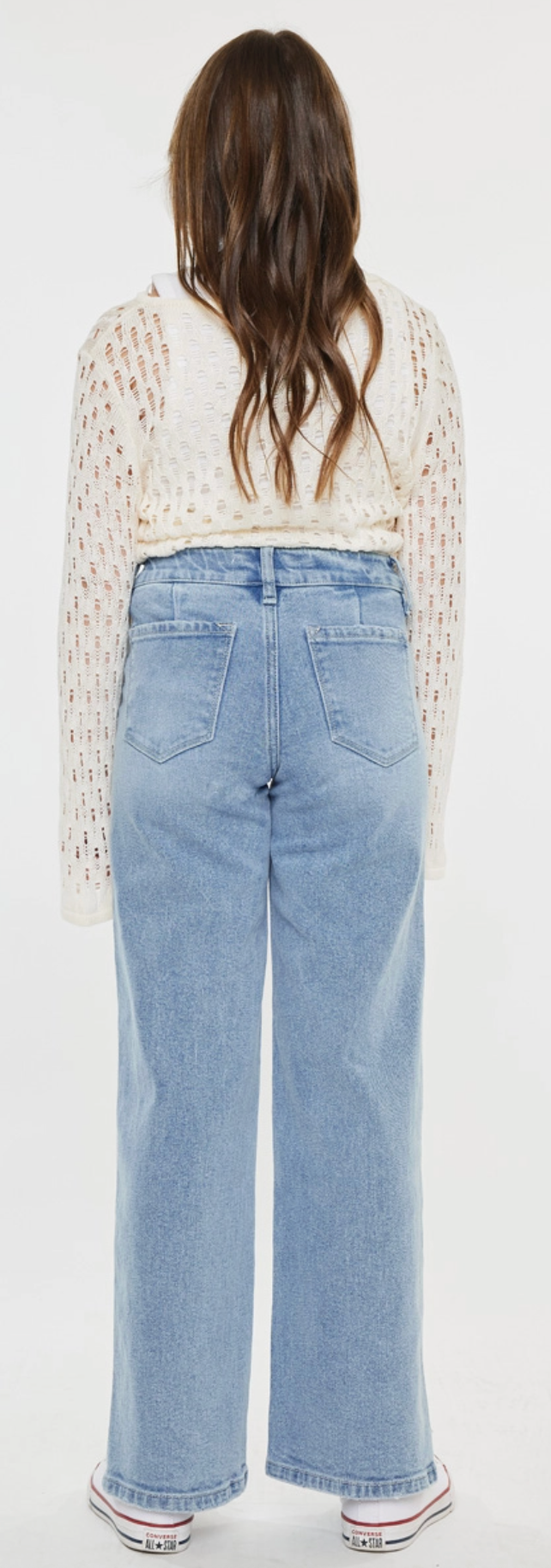 These jeans are bringing all the sunshine vibes with their fresh light wash — basically the denim version of a perfect summer day. The high-rise fit is cute and comfy, giving your little fashion icon all the trendy "big kid" feels without sacrificing an ounce of playtime flexibility. Thanks to that magical comfort stretch, the Hazel Jeans move with them, not against them — whether they’re chasing dreams, butterflies, or the ice cream truck.