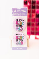 Rev up your cup holders with these pink car coasters that declare "My other ride is your dad". Keep your car clean and bring a smile to your face every time you take a sip! (Note: may cause excessive laughter and/or embarrassment. Use with caution and a sense of humor.)
