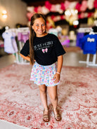 Warning: Extreme cuteness ahead! 💥🎀 Our Neon Bow-tiful Skort is bringing bold, bright, and bow-tastic vibes to every twirl, skip, and sass-filled strut! Covered in the cutest collection of neon-colored bows, this skort is a whole mood for the girl who lights up every room she walks into.